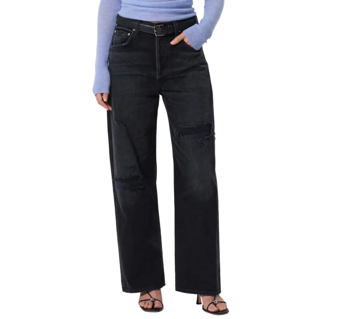 The Ayla jean offers a refined take on the baggy silhouette with a relaxed fit that sits away from the body while maintaining a clean, intentional shape. Vernatta is a dark, washed-out black with fading, whiskering. Crafted from rigid regenerative cotton with a soft hand, it styles effortlessly with everything from crisp shirting to slim knits.