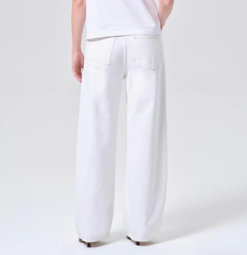 The Low Curve Jean is designed with a mid-rise waist, relaxed fit, and a subtle curved outseam that tapers for a refined yet effortless silhouette. Crafted from clean white, non-stretch denim in regenerative cotton, it offers a crisp, structured feel with a modern edge. Style with tonal layers for a fresh monochrome statement or pair with relaxed tailoring for a balanced, minimal look.
