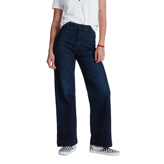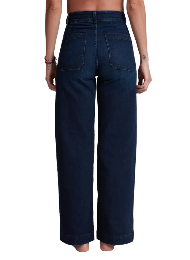 Our classic silhouette featuring a high rise, relaxed wide leg, and iconic sailor pocket details. The Sailor is a modern update on vintage naval trousers—designed with clean front patch pockets and a cropped inseam for effortless versatility. Cut from 10 oz Japanese stretch denim, this style balances timeless structure with everyday ease.