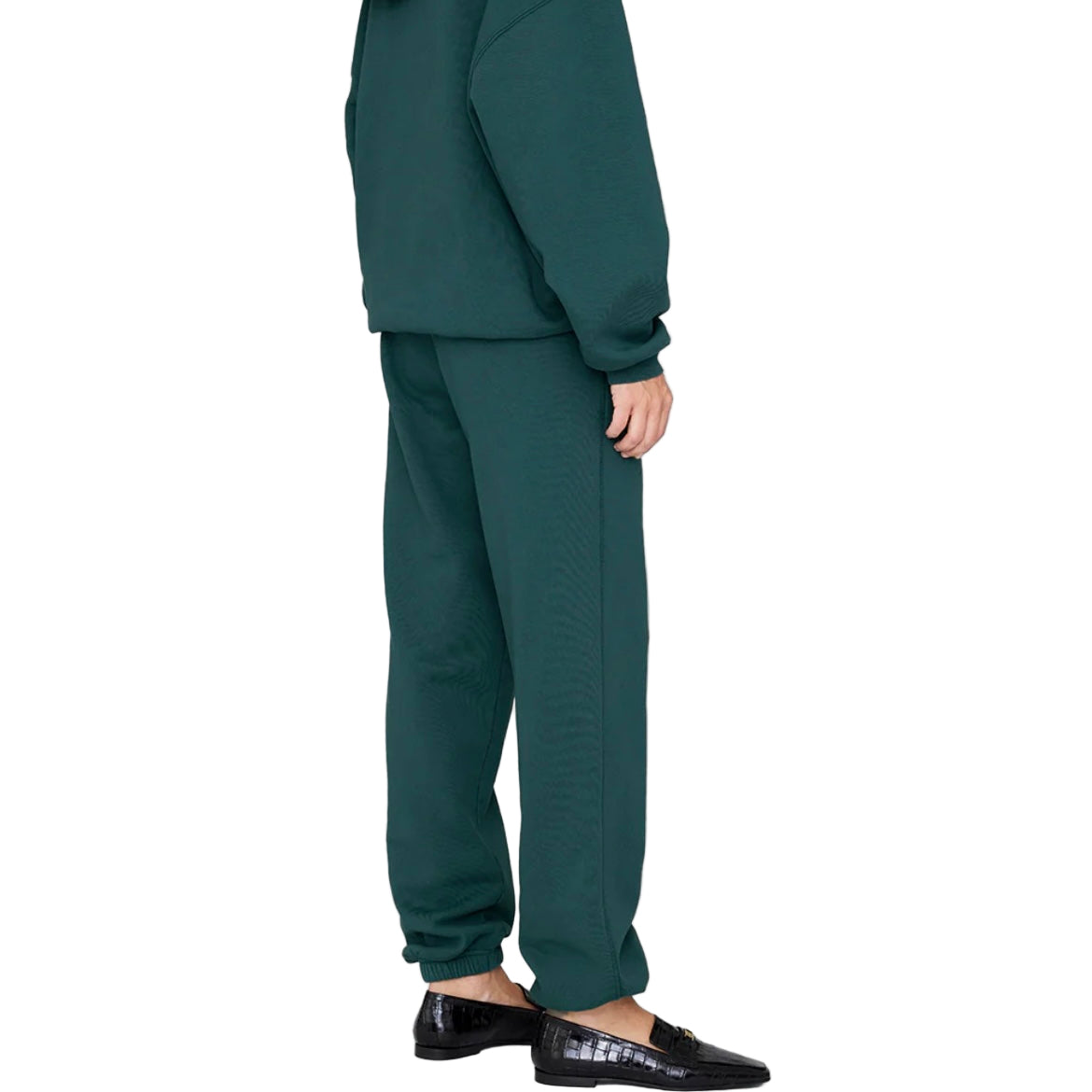 The Karter Jogger is a relaxed sweatpant made from midweight 100% cotton fleece in a dark teal.
