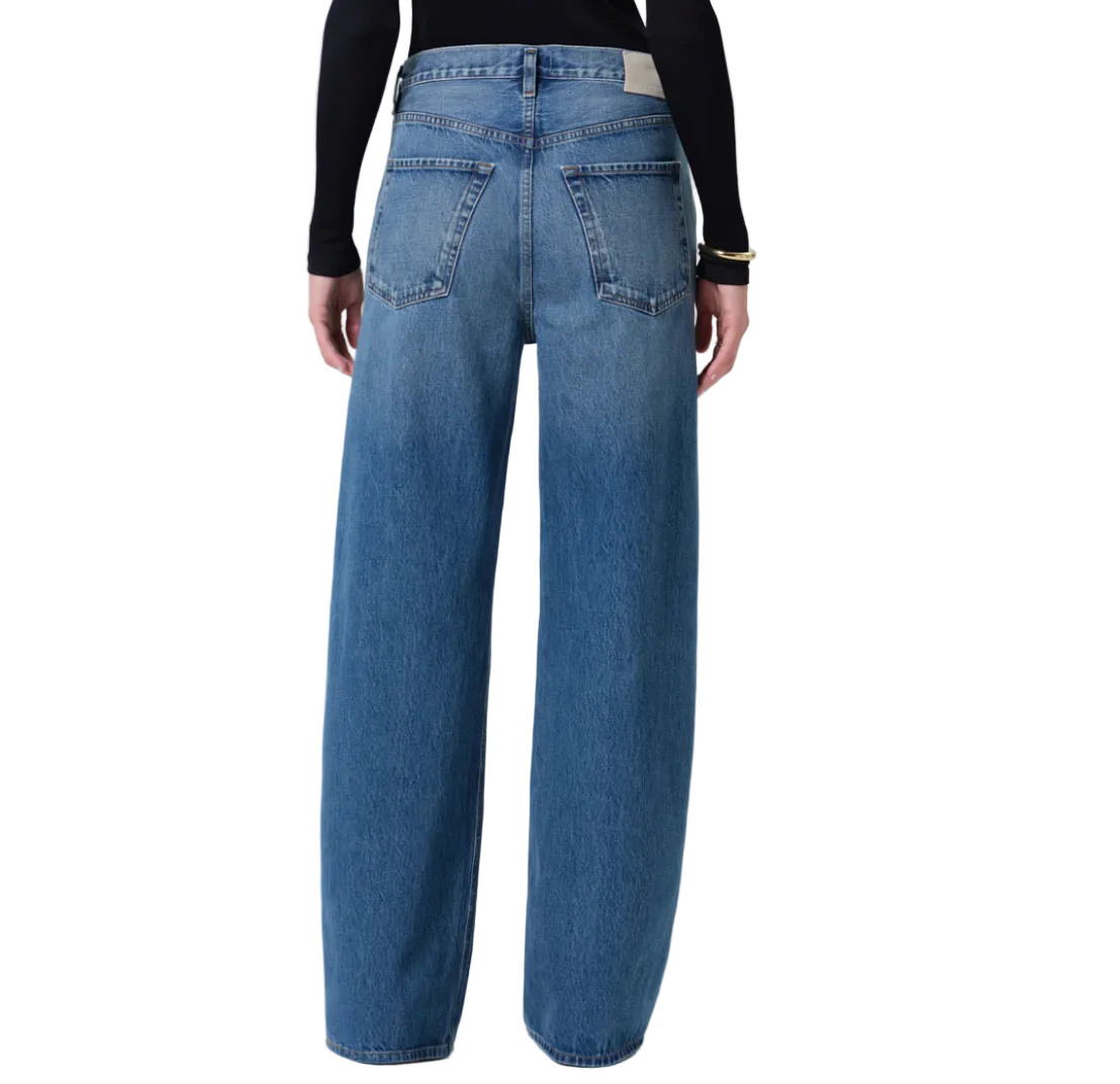 The Ayla jean offers a refined take on the baggy silhouette with a relaxed fit that sits away from the body while maintaining a clean, intentional shape. The "Chaya" wash is a medium to light indigo denim pant with fading, whiskering. Crafted from rigid regenerative cotton with a soft hand, it styles effortlessly with everything from crisp shirting to slim knits.