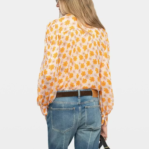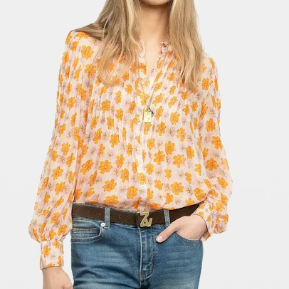 Printed muslin tunic with button fastening with button closure and long sleeves.