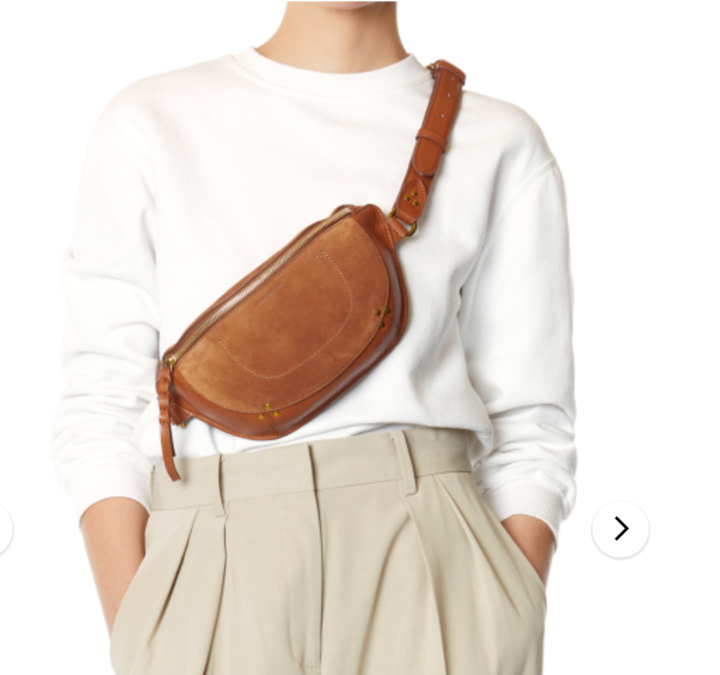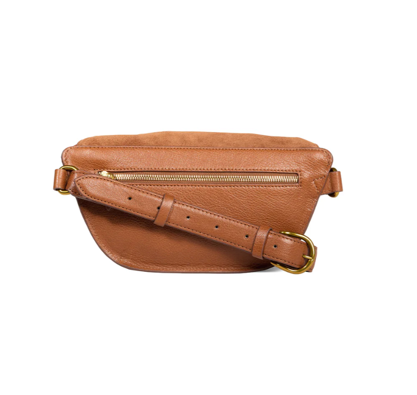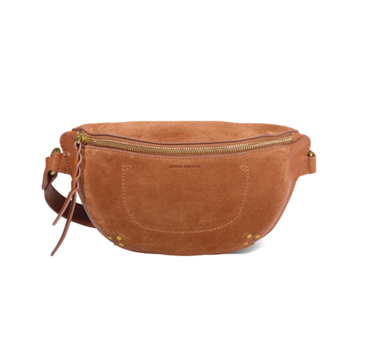Belt bag, to wear cross-body or at the waist. Zipper closure on the top of the bag.