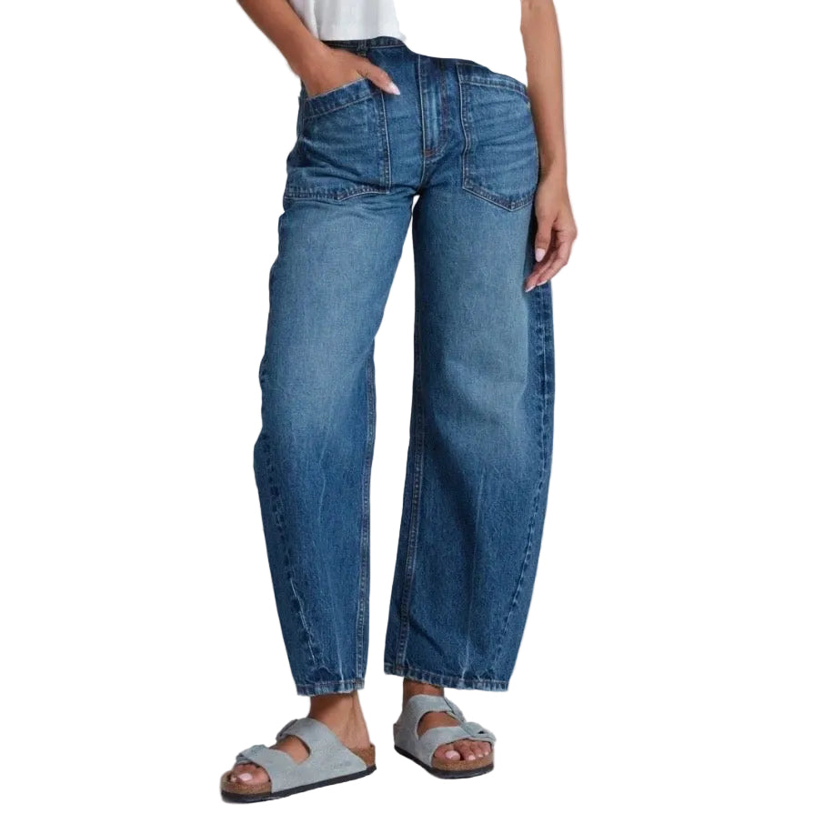The Twisted Barrel is a statement wide-leg jean with a sculpted, dimensional shape. Designed with a high rise and ankle length, this silhouette features forward side seams and a subtle twist through the leg—creating a modern, architectural barrel fit. Large front patch pockets add utility and character, while the rigid Japanese denim breaks in beautifully over time. Unique yet wearable, it's an elevated everyday jean with an edge.